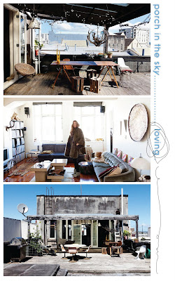 Loving this rooftop patio... the colors, the antlers, the couch and just about everything else.